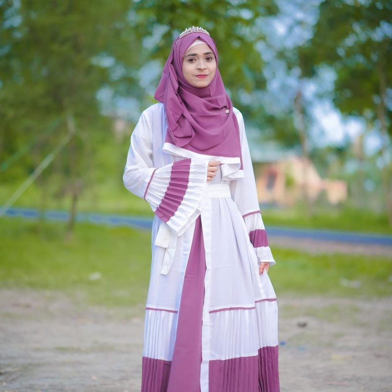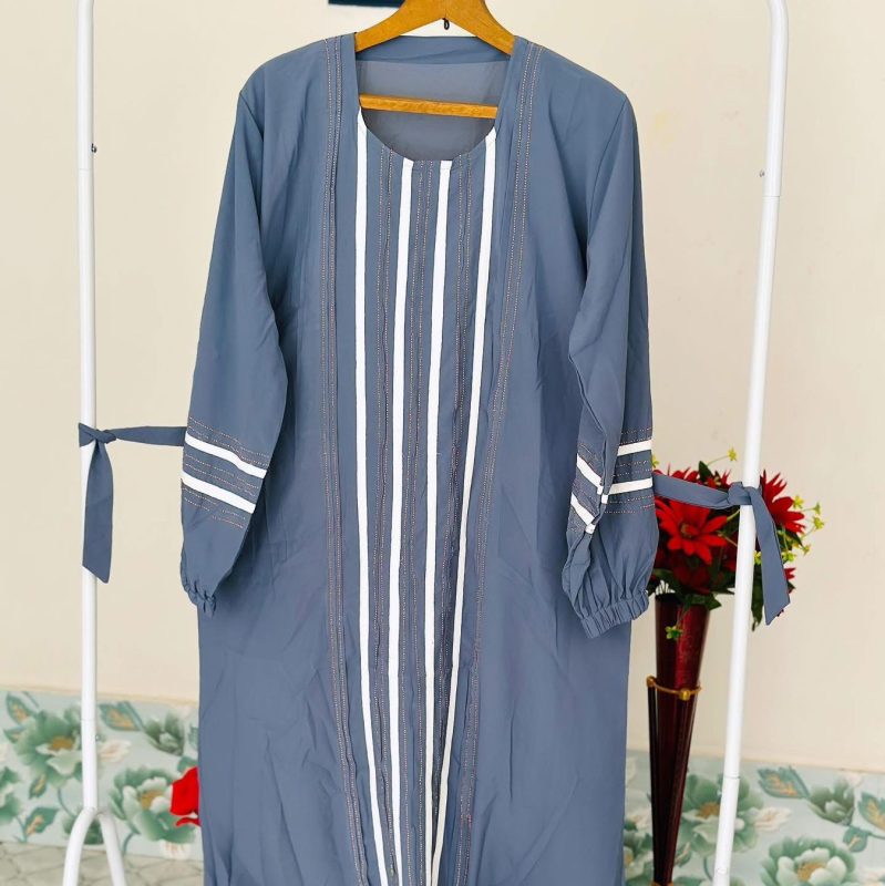 Finally found a dress that is both modest and stylish!" "I ordered the Slate Blue Striped Abaya and I am absolutely in love with it. The fabric is so soft and breathable, making it perfect for all-day wear. The vertical stripes give such a flattering silhouette, and the balloon sleeves are a beautiful touch. It fits perfectly—loose enough to be modest but still very chic. Highly recommend Mahnin Hijab for anyone looking for quality modest wear!