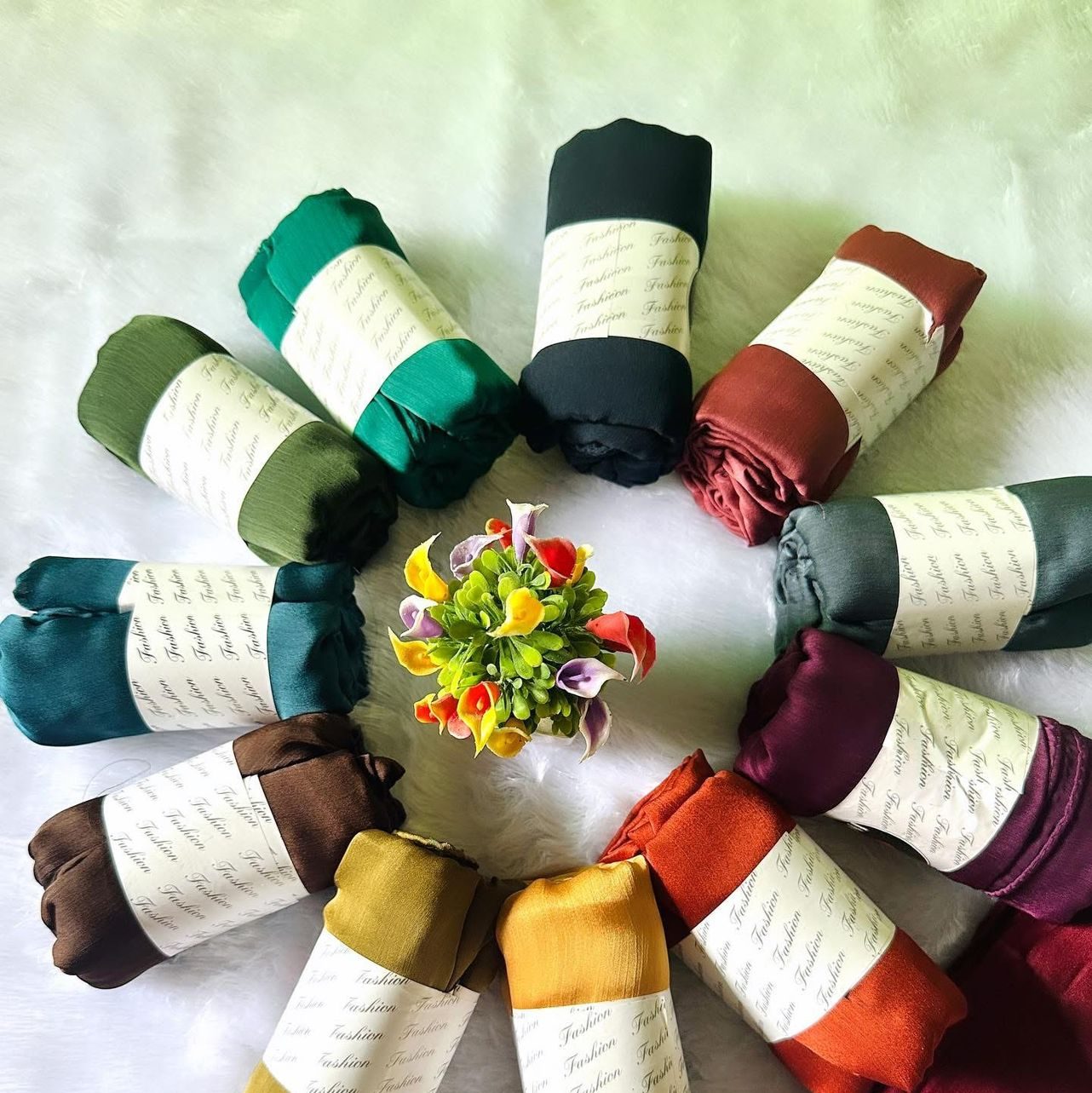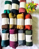 Available in a wide array of rich, varied colors to suit every mood and outfit. From deep, sophisticated tones like emerald green, burgundy, and classic black, to warm neutrals like brown, mustard, and grey, you’ll find the perfect shade to complement your wardrobe. Each hijab is presented in a neat roll with a “Fashion” band, highlighting its quality and making it a beautiful gift.